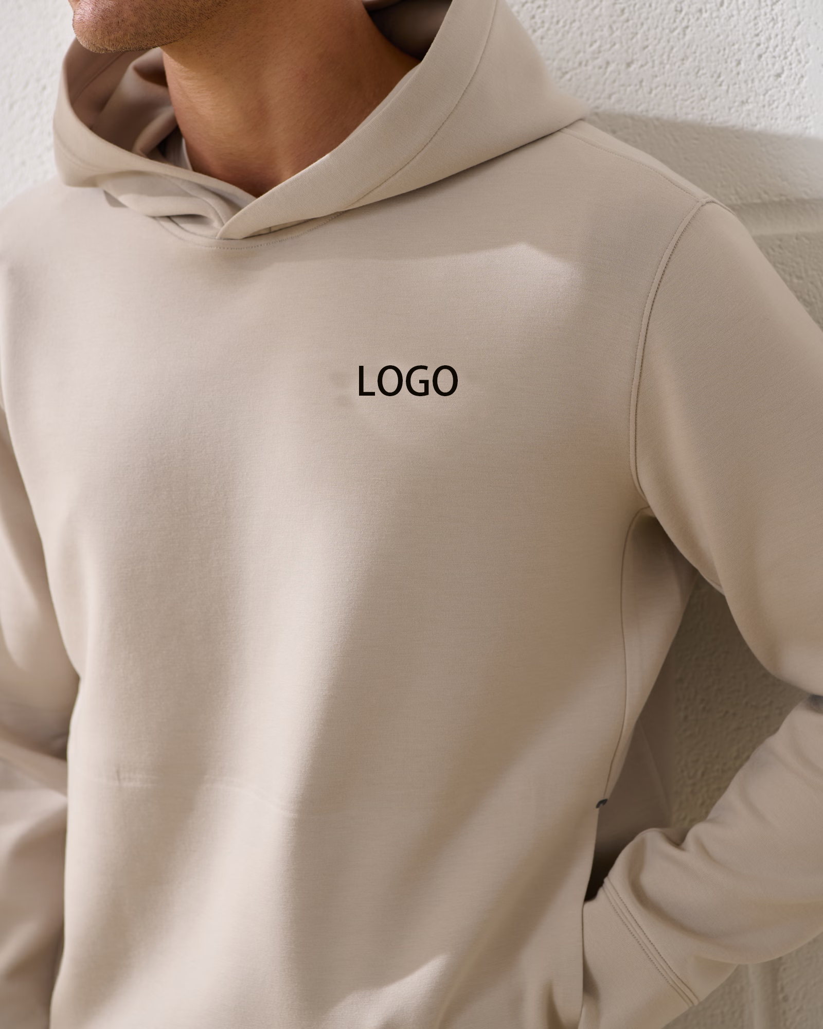 Customize solid Men’s hoodie with pocket rib sleeve cuff and hem
